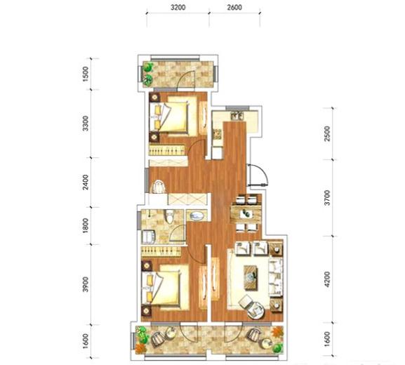 主力户型:二居室(79-97m²) 三居室(214m²) 四居室(264-286m²) 五居室(271m²)